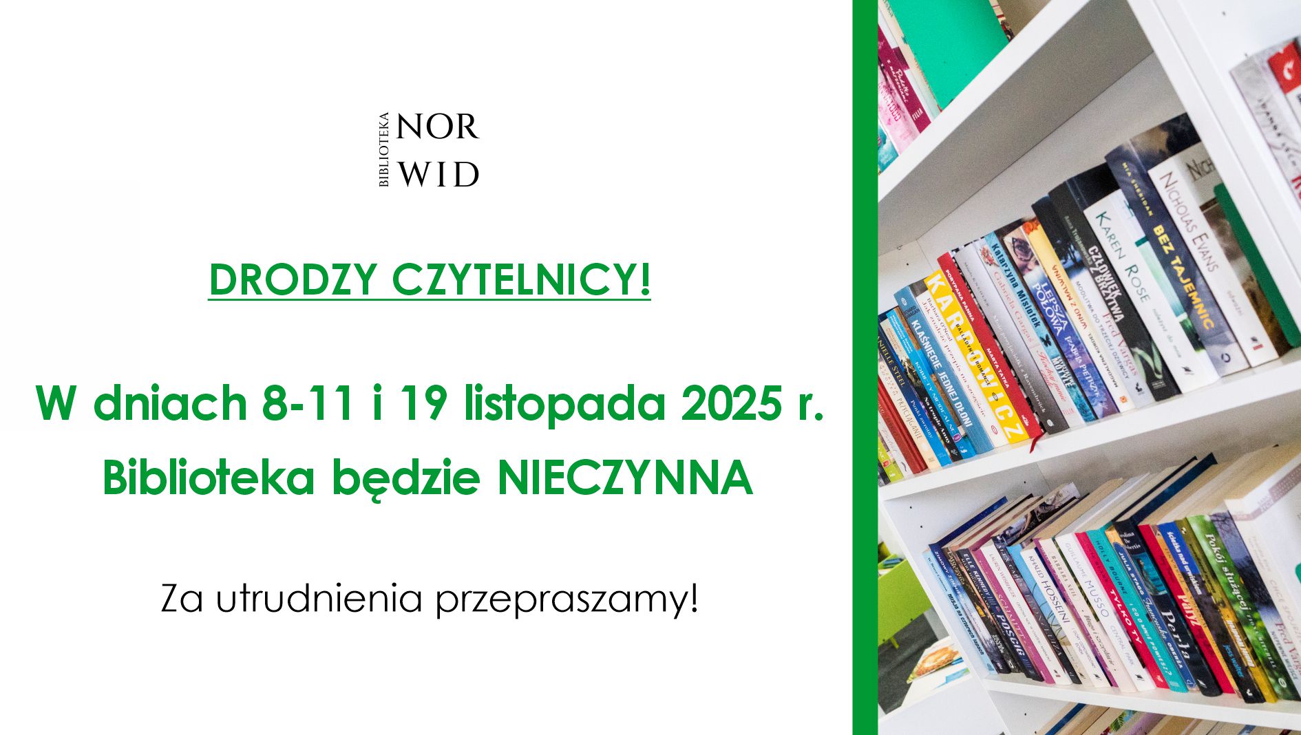 W dniach 8-9 listopada 2025 r. Biblioteka nieczynna