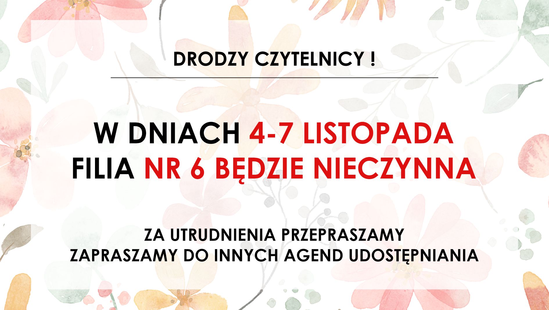 Filia nr 6 nieczynna w dniach 4-7 listopada 2025 r.