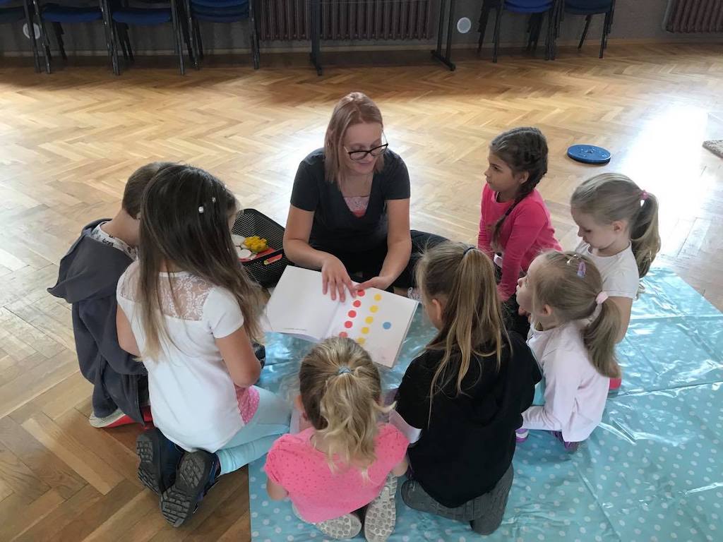 „Naciśnij mnie” zostało wykorzystane przez bibliotekarza podczas ostatnich zajęć sensorycznych, które były organizowane w GOKiB w Wymiarkach w sierpniu i we wrześniu. Pomysł z książką bardzo spodobał się dzieciom, które chętnie wykonywały polecenia i miały mnóstwo pomysłów na ozdobienie książki miękkimi pomponikami.