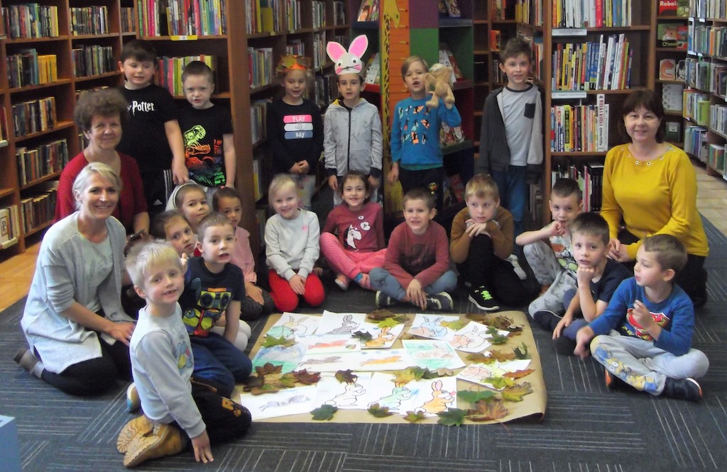 Nie zabrakło również zagadek o tej kapryśnej porze roku, która - jak stwierdziły dzieci w myśl przysłowia - przeplata trochę zimy, trochę lata. Ponadto klubowicze mogli wykazać się znajomością darów natury w konkursie „Co nam niesie Pani Jesień?” i poćwiczyć swoją sprawność w zabawie „Zerwij lub wykop i wrzuć do koszyka”. A na zakończenie zajęć przedszkolaki stworzyły piękne jesienne obrazy z motywem bawiącego się zająca wśród kolorowych liści.