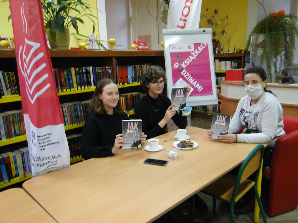 We wtorkowe popołudnie, 22.02.2022 r., o godz. 16.30 odbyło się spotkanie DKK. Do dyskusji młodzież przygotowała powieść Crane R. "Jak pokochać freaka". W spotkaniu uczestniczyły 4 osoby. Amelka i Dominika stacjonarnie, a Ala i Hania połączyły się z nami online, z powodu kontuzji musiały pozostać w domu.