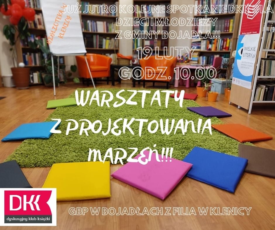 Warsztaty projektowania marzeń dla dzieci i młodzieży z Gminy Bojadła odbyły się 19 lutego 2022.