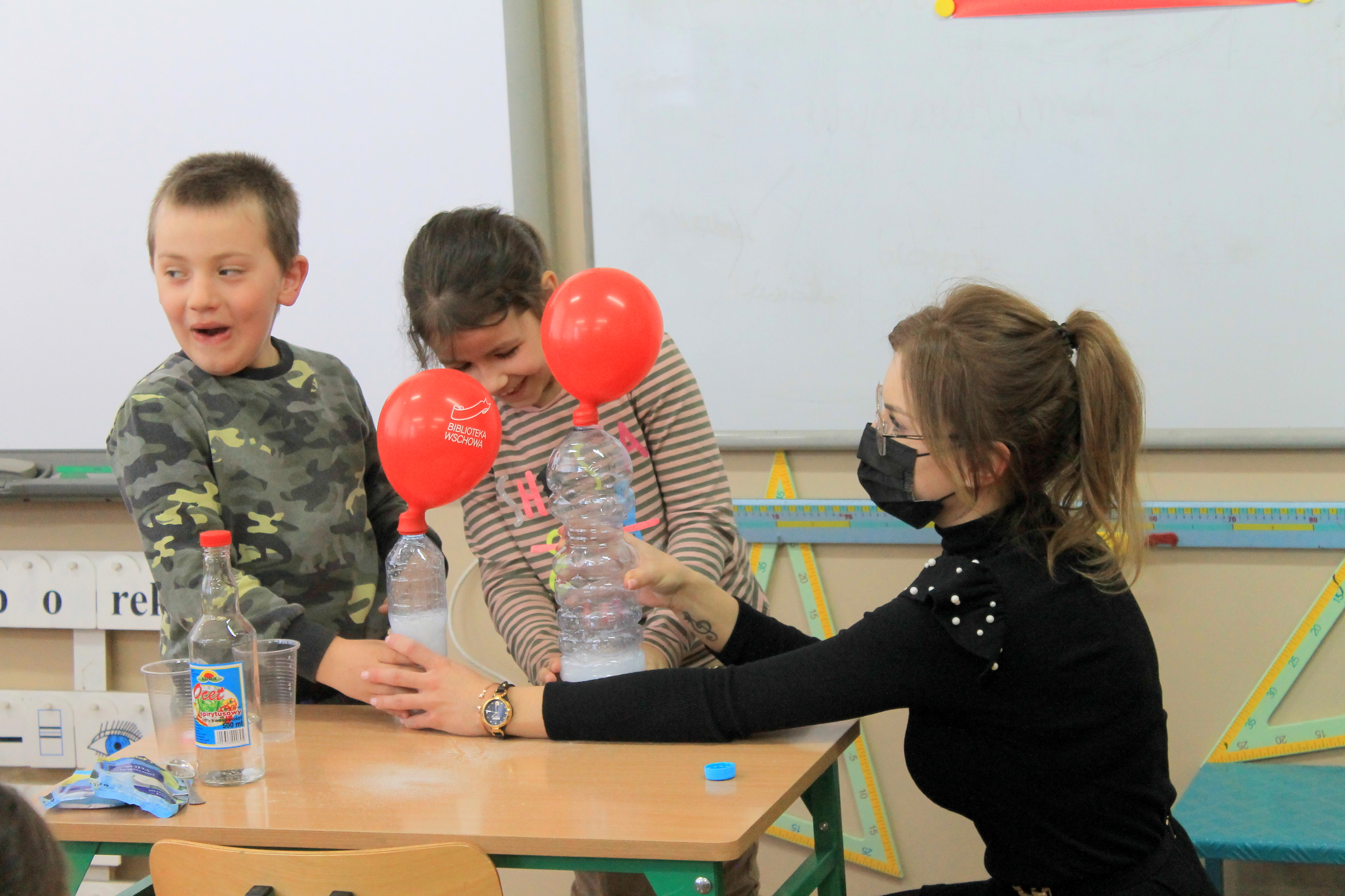 14 marca 2022 roku odbyło się kolejne spotkanie Dyskusyjnego Klubu Książki dla Dzieci i Młodzieży z uczestnictwem klasy 1 b Szkoły Podstawowej nr 2 we Wschowie. Tym razem poznaliśmy bliżej postać Thomasa Edisona – wielkiego wynalazcy. Dowiedzieliśmy się jak rozpoczęła się jego przygoda z eksperymentami i do czego doprowadziła. Przeczytaliśmy o służących nam po dziś dzień wynalazkach, które opatentował. Historia Edisona stała się dla nas inspiracją do przeprowadzenia własnych doświadczeń. Zamierzaliśmy sprawdzić, czy można nadmuchać balon bez pomocy ust. Nalaliśmy zatem do plastikowych butelek trochę octu. Do balonów nasypaliśmy nieco sody oczyszczonej, a następnie założyliśmy je na szyjki butelek z octem. Po poruszeniu balonem soda wpadała do butelki i w połączeniu z octem tworzyła reakcję, która napełniała balon powietrzem. Zabawa pokazała nam, że warto próbować nowych rzeczy, nawet jeśli początkowo nie przyniosą oczekiwanych rezultatów. Historia Thomasa dowiodła, że małymi krokami za sprawą ciekawości świata, uporu i ambicji można osiągnąć wielki sukces.