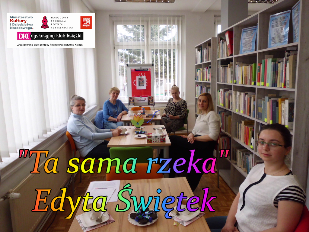 Na kolejnym spotkaniu Dyskusyjnego Klubu Książki, które odbyło się w dniu 26.04.2022 omawialiśmy książkę Edyty Świętek „Ta sama rzeka”. Główna bohaterka powieści to Małgorzata, która wychowywała się w domu dziecka. Kiedy na swojej drodze życiowej staje Piotr Jurczyk, jest nim oczarowana, ponieważ wydaje się być miłym, opiekuńczym i starającym się dbać o nią człowiekiem. Ktoś, kto nigdy nie zaznał ciepła rodzinnego jest bardziej podatny na miłe słowa i obietnice. I tak właśnie stało się z naszą Małgosią. Zakochali się, wzięli ślub i zamieszkali w mieszkaniu po cioci. Po urodzeniu dziecka Gosia czuła się coraz bardziej osaczona, musiała się tłumaczyć z wszystkiego: gdzie była, co robiła, ile pieniędzy wydała na zakupy. Zaczęła się czuć w tym związku coraz gorzej. Tylko praca dawała jej siłę do walki. Mąż z czasem okazał się być tyranem, który zastraszał ją, że odbierze jej dziecko jak nie będzie mu posłuszna. Jednak nasza bohaterka ma plan – chce opuścić męża, gdy syn osiągnie pełnoletność. Czy jej się to udało i czy wyszła z tego związku bez szwanku? Warto zajrzeć do lektury. Autorka ukazała w książce wizerunek wielu kobiet, które żyją w takich toksycznych związkach. Książka zmusza do refleksji, daje nadzieję na lepsze jutro.
