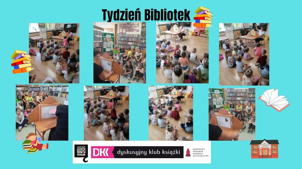 W tym roku odbyło się ono pod hasłem: „Biblioteka – świat w jednym miejscu”. Z tej okazji klubowicze wraz z wychowawczynią klasy pierwszej odwiedzili filię, aby wspólnie świętować. Miłym zaskoczeniem był dla wszystkich teatrzyk Kamisibai. Były to opowiedziane z lekkością historie pt. „Lew w Paryżu” oraz „Uczucia”.