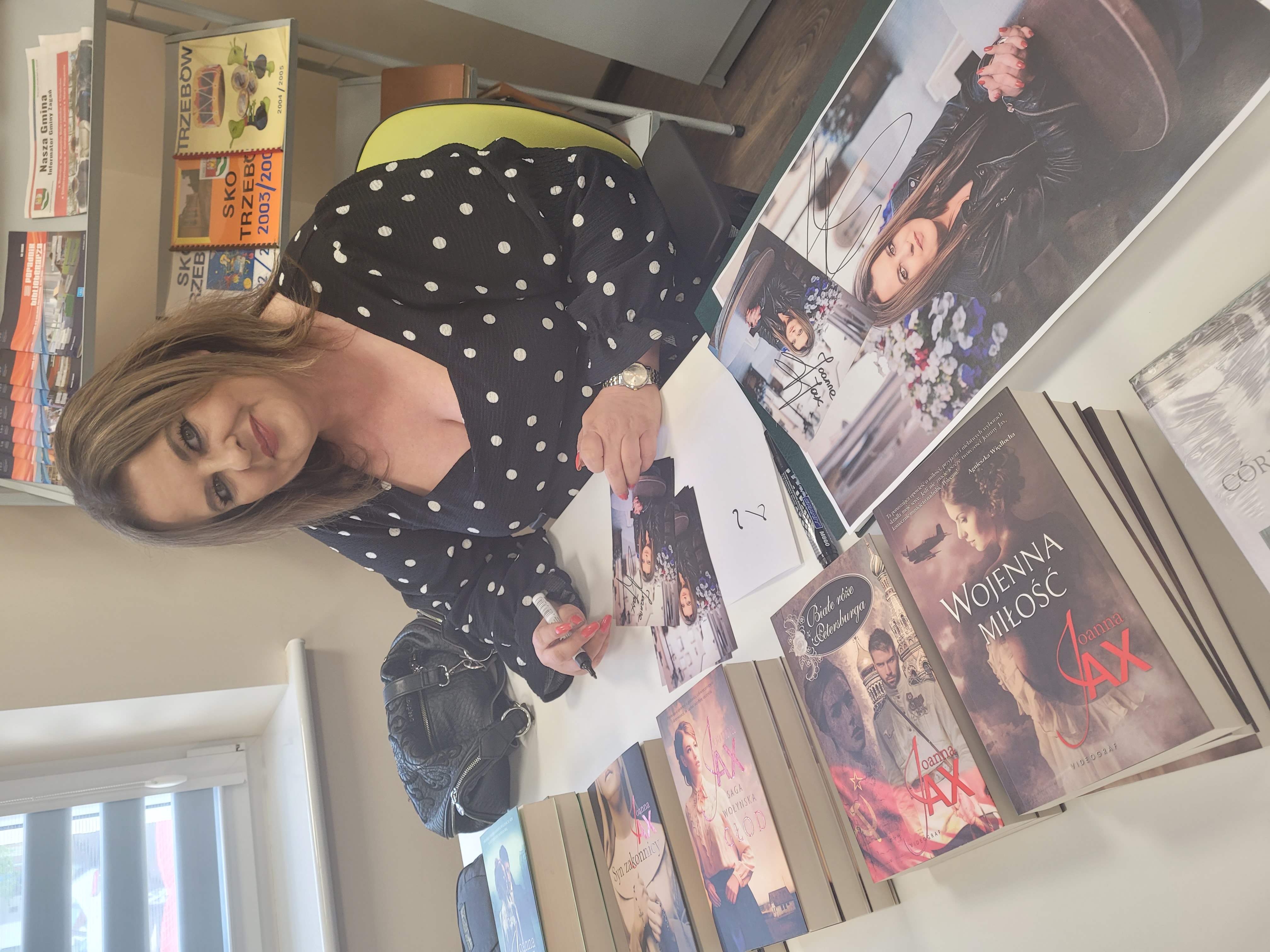 Promocja spotkania zaowocowała pojawieniem się licznej grupy czytelników. Pani Joanna Jax chętnie podpisywała książki dla uczestników spotkania i pozowała do pamiątkowych zdjęć.
